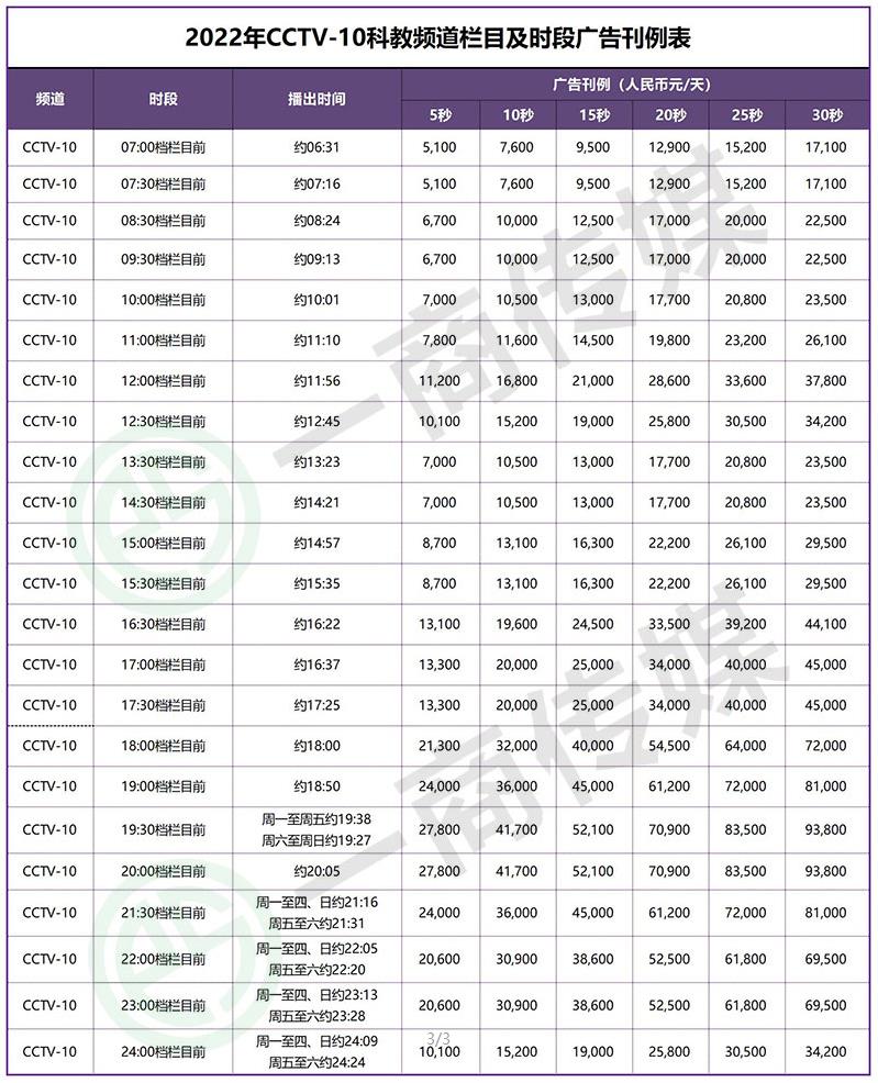 以下是一商传媒为您提供的2022年CCTV-10科教频道央视广告价格,可以优先选择时段,为您匹配高性价比的广告资源,制定整合性的媒体投放策略及优化的量身定制传播方案。同时还提供媒介研究、品牌策划与广告创意、媒介计划与购买、节目及影视剧植入、互联网整合营销等全方位的整合传播服务。
