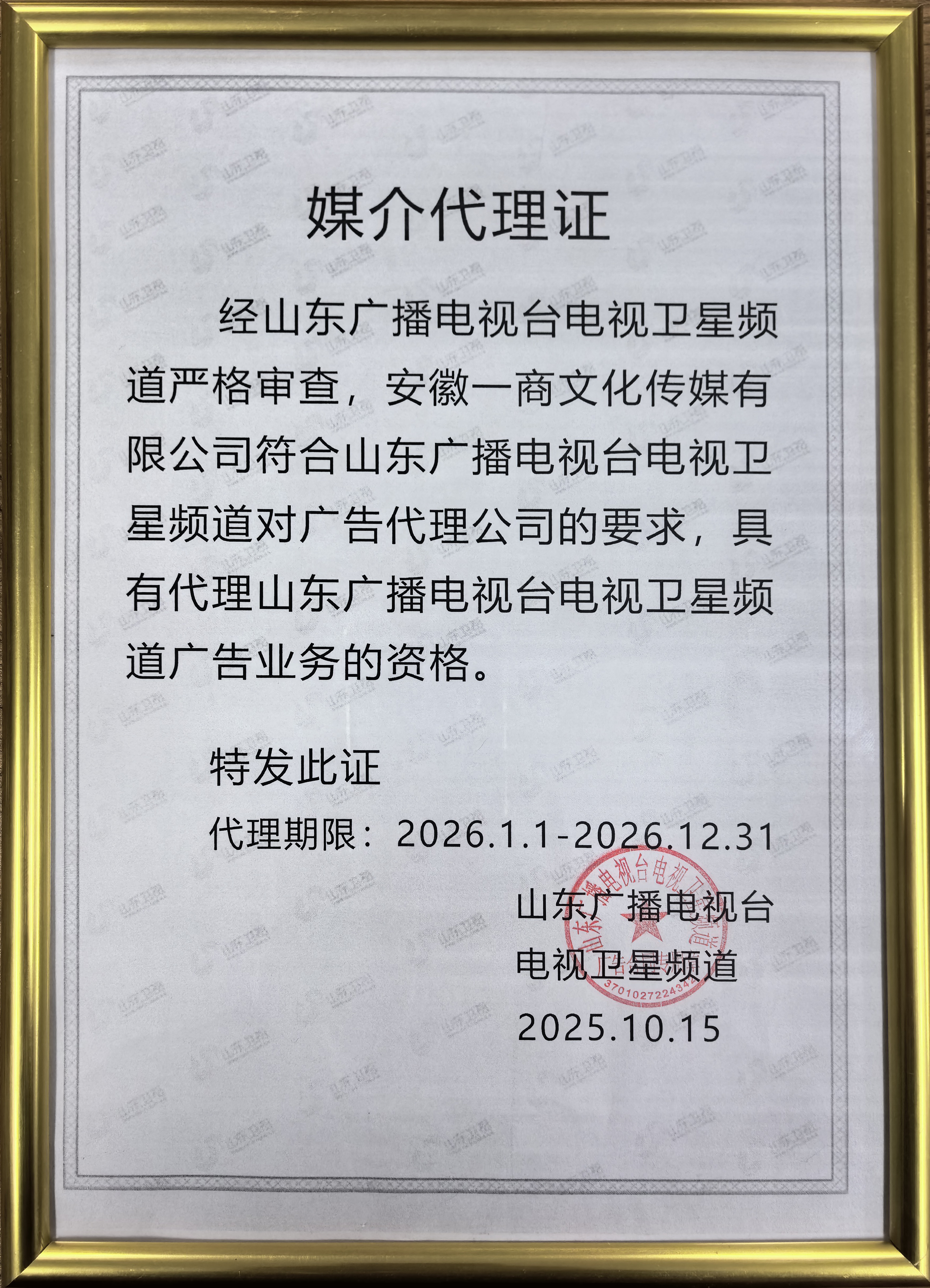 场分析和全新的购买方式,演绎优秀品牌特征,追求价值倍增的传播效果。2025年一商传媒荣获多家主流卫视代理证。