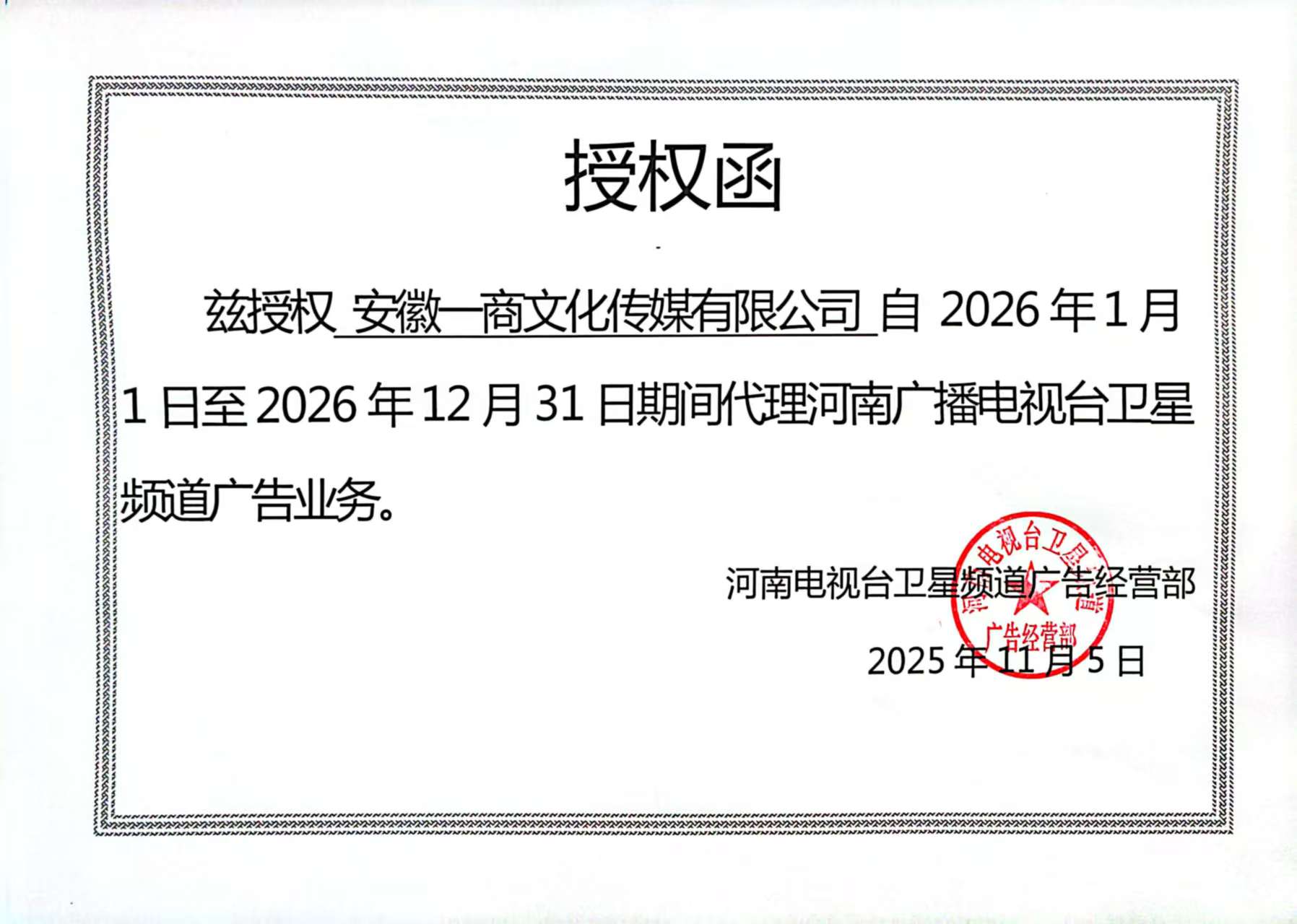 一商传媒——2026年河南卫视代理证