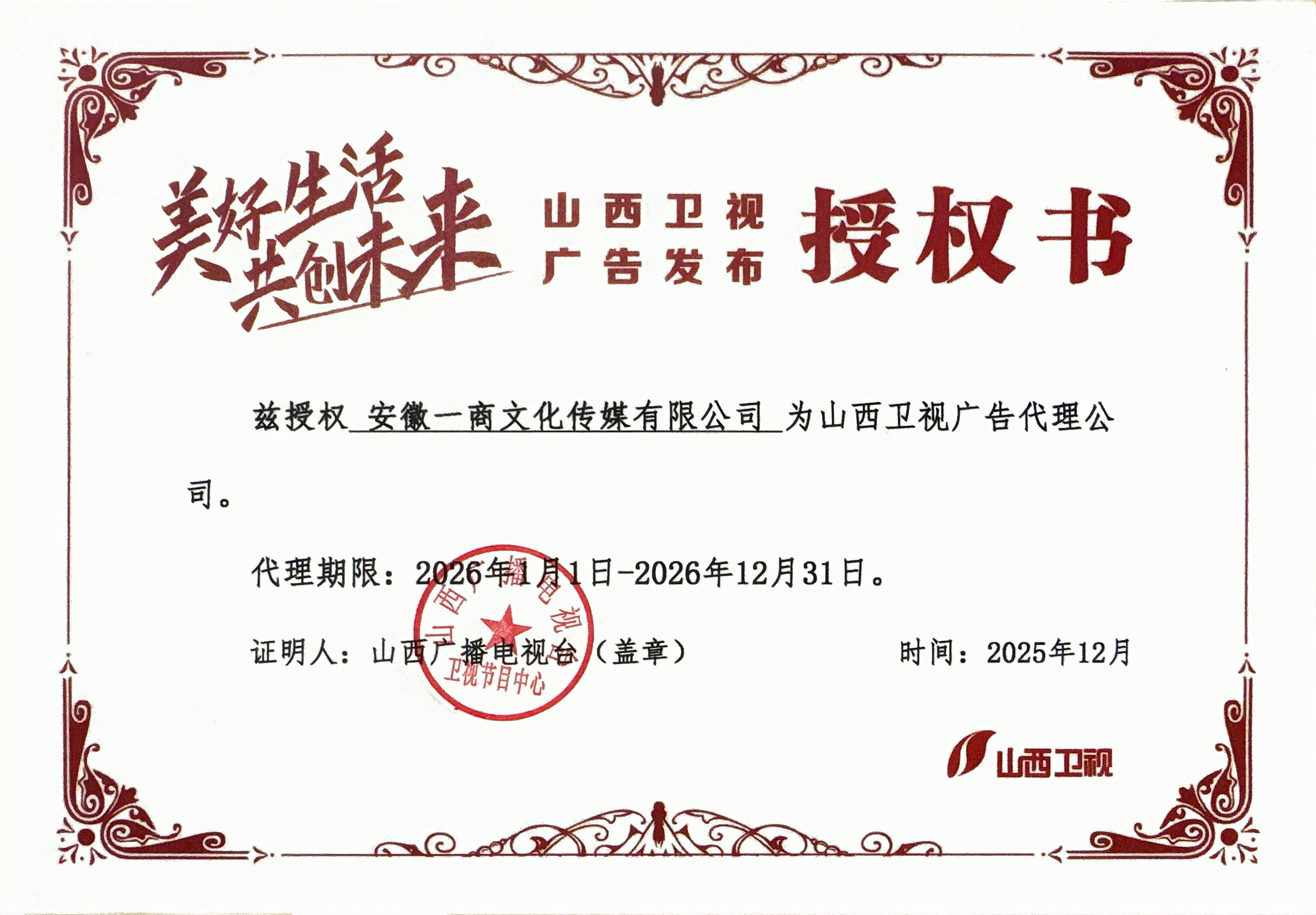 一商传媒——2026年山西卫视代理证